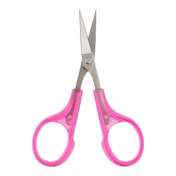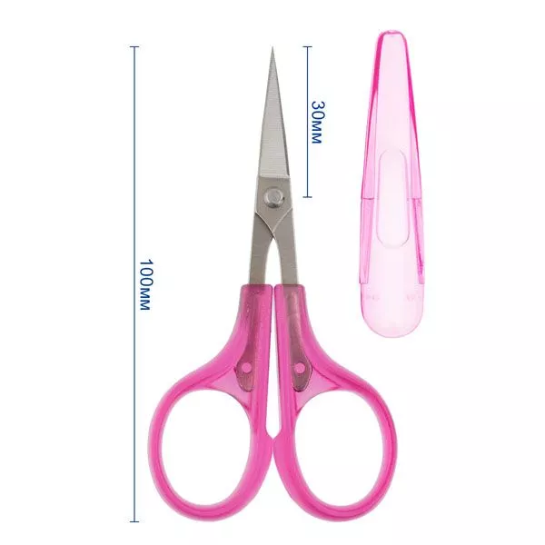 Металлические ножницы с пластиковыми легкими ручками и защитным колпачком. Цвет розовый. Длина ножниц 10 см , длина лезвия 3 см