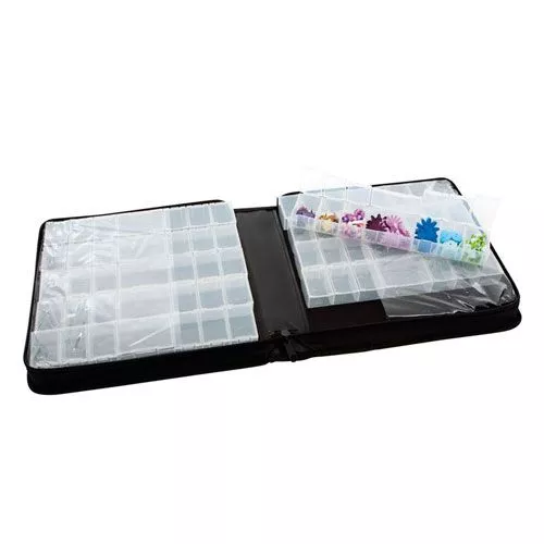 Органайзер состоит из 10 блоков по 10 контейнеров в каждом. Закрывается на замок-молнию, в сложенном виде выглядит как папка. Идеально подходит для хранения мелких украшений. Размер папки 26х26х6,5 см. Размер ячеек 4,5х2,8х3 см и 6х4,5х2,8 см