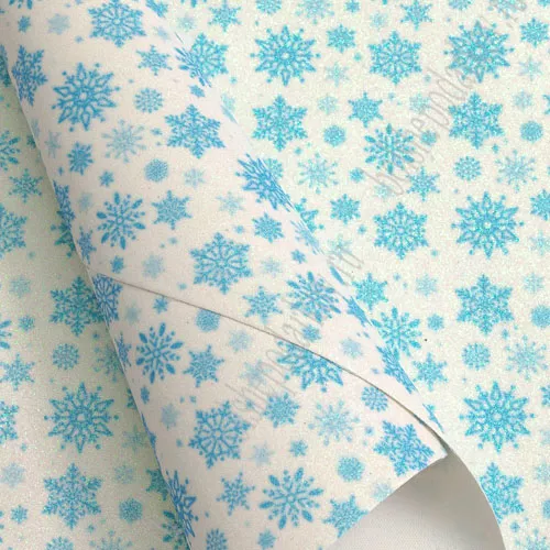 Отрез экокожи А4 с глиттером "Снежинки голубые"