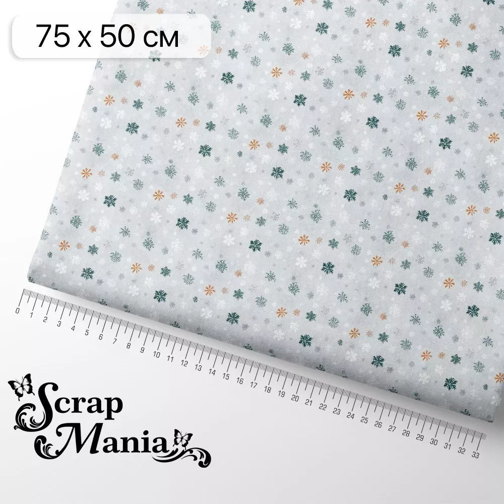 Отрез ткани 75х50 см "Снежинки-мандаринки. Снегопад" (ScrapMania)