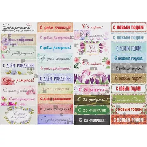 Главная Украшения для скрапбукинга в Москве Украшения из бумаги в Москве Скрап-карты в Москве Скрап-карта А4 "Надписи. Праздники" (Scrapmama)