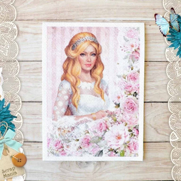 Тканевая карточка "Свадебный букет. Невеста" (ScrapMania)