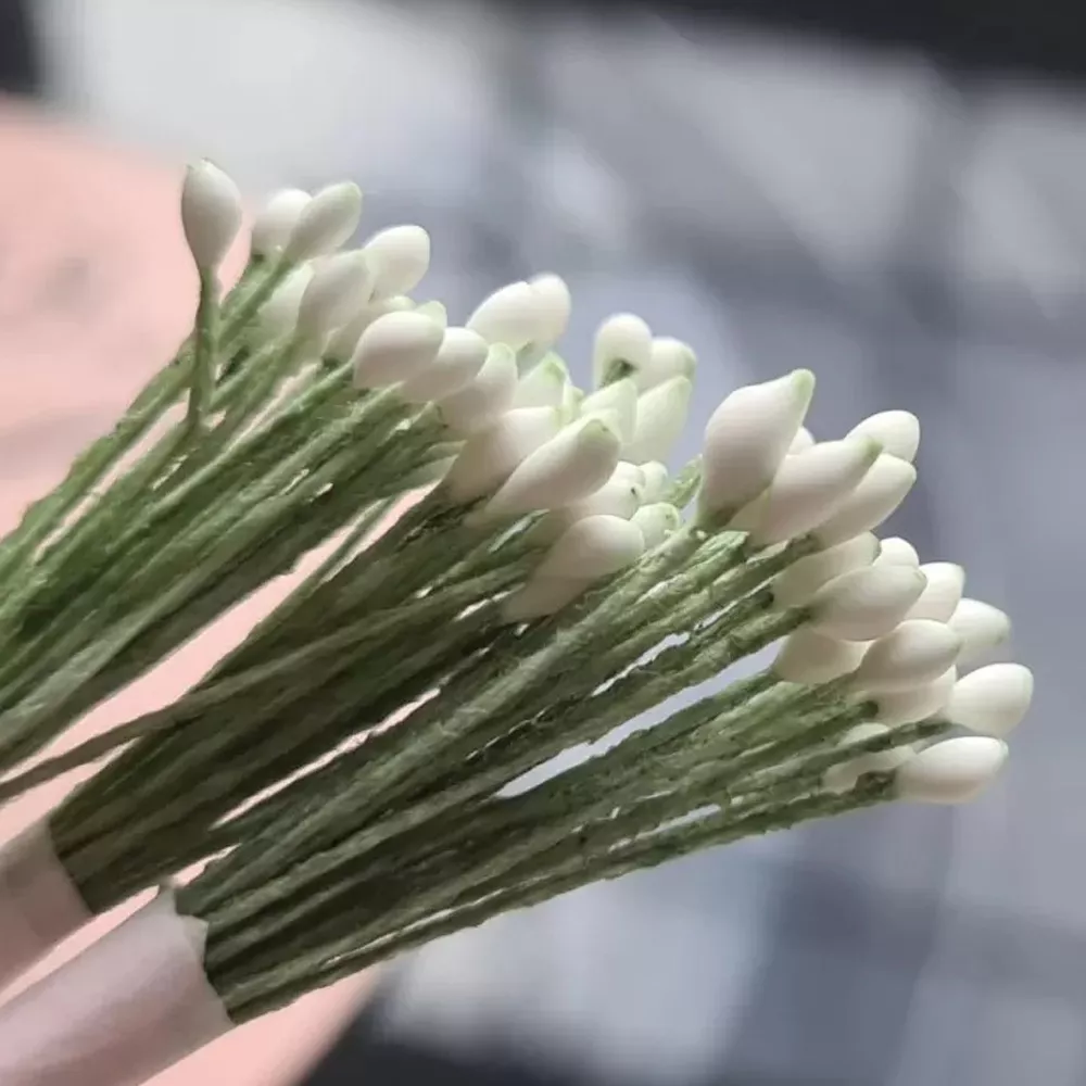 Тычинки "Капли. Белые на темно-зеленой нити", 25 шт (AgiArt)