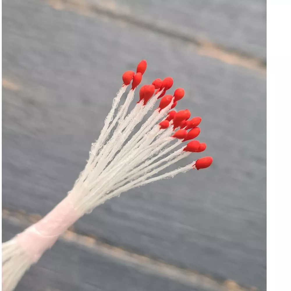 Тычинки "Капли мини. Красные на белой нити", 25 шт (AgiArt)