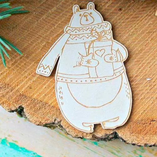 Украшение из чипборда "Мишка с подарком" (ScrapКрым)
