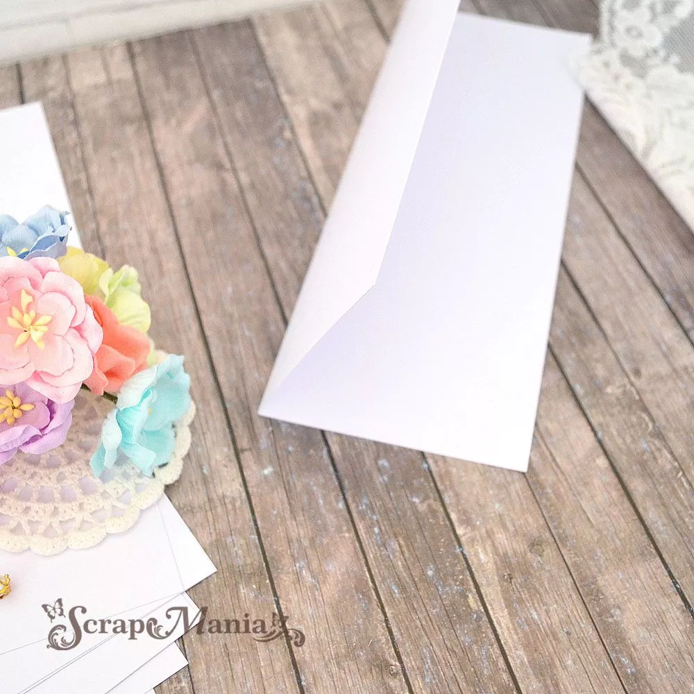 Размер заготовки в сложенном виде 8,5х22 см, в развернутом виде 17х22 см. Плотная бумага с перламутровой поверхностью и двусторонним покрытием. Плотность 290 г/м2. Не содержит лигнина. Белоснежное сияние с легким голубым оттенком станет прекрасной основой для нежных открыток. Размер заготовки позволяет использовать ее не только для создания открыток и приглашений, но и как основу рассадочных карточек