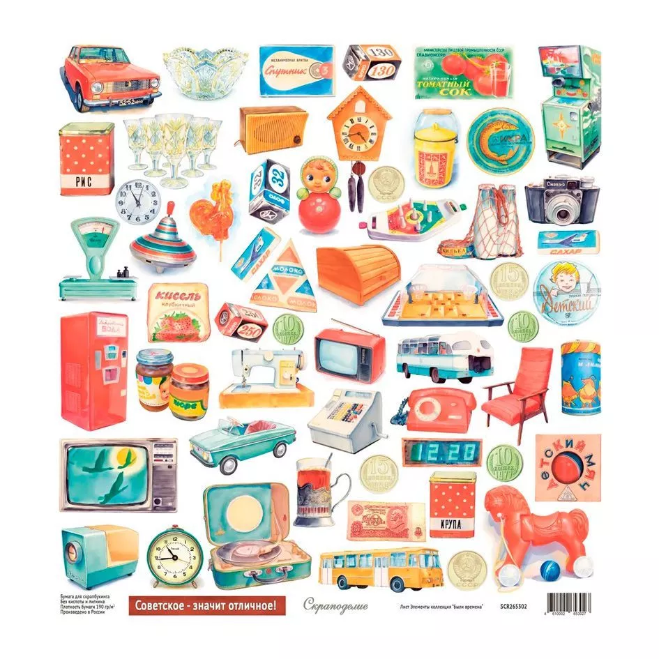 Бумага 30х30 см "Были времена. Элементы" (Scrapodelie)